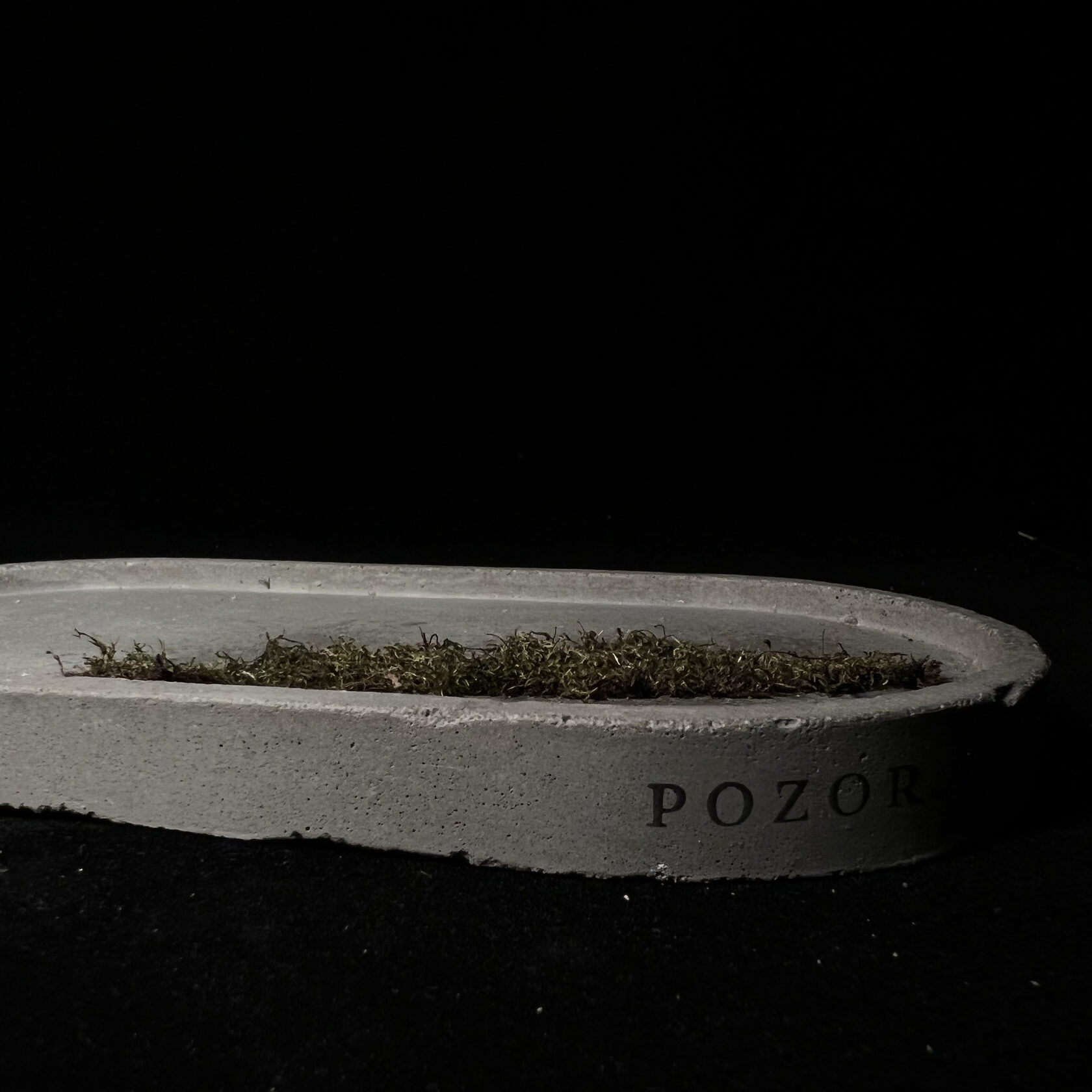 Concrete Bowl with natural Moss, Copper and a burnt piece of Oak wood POZOR. COLLECTION