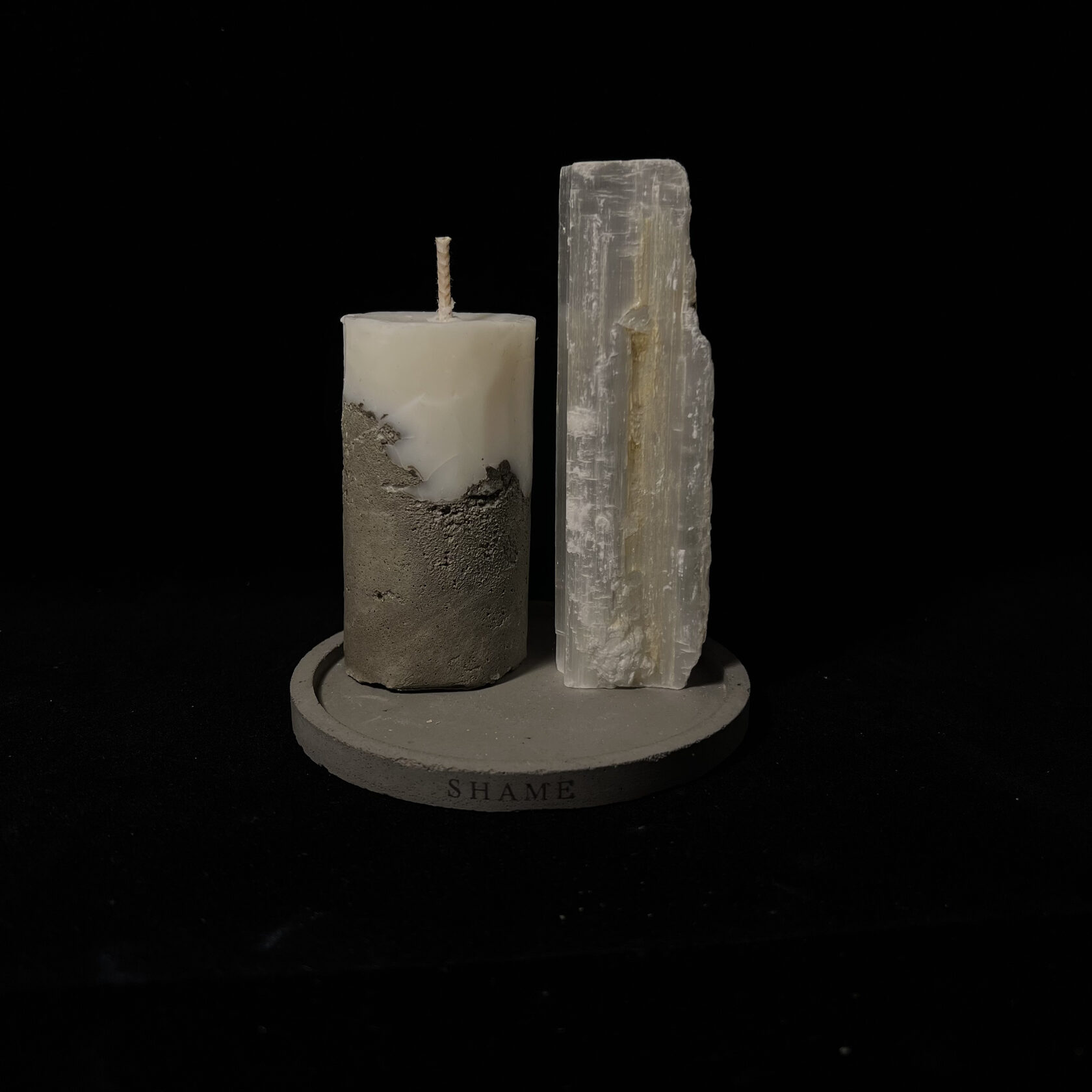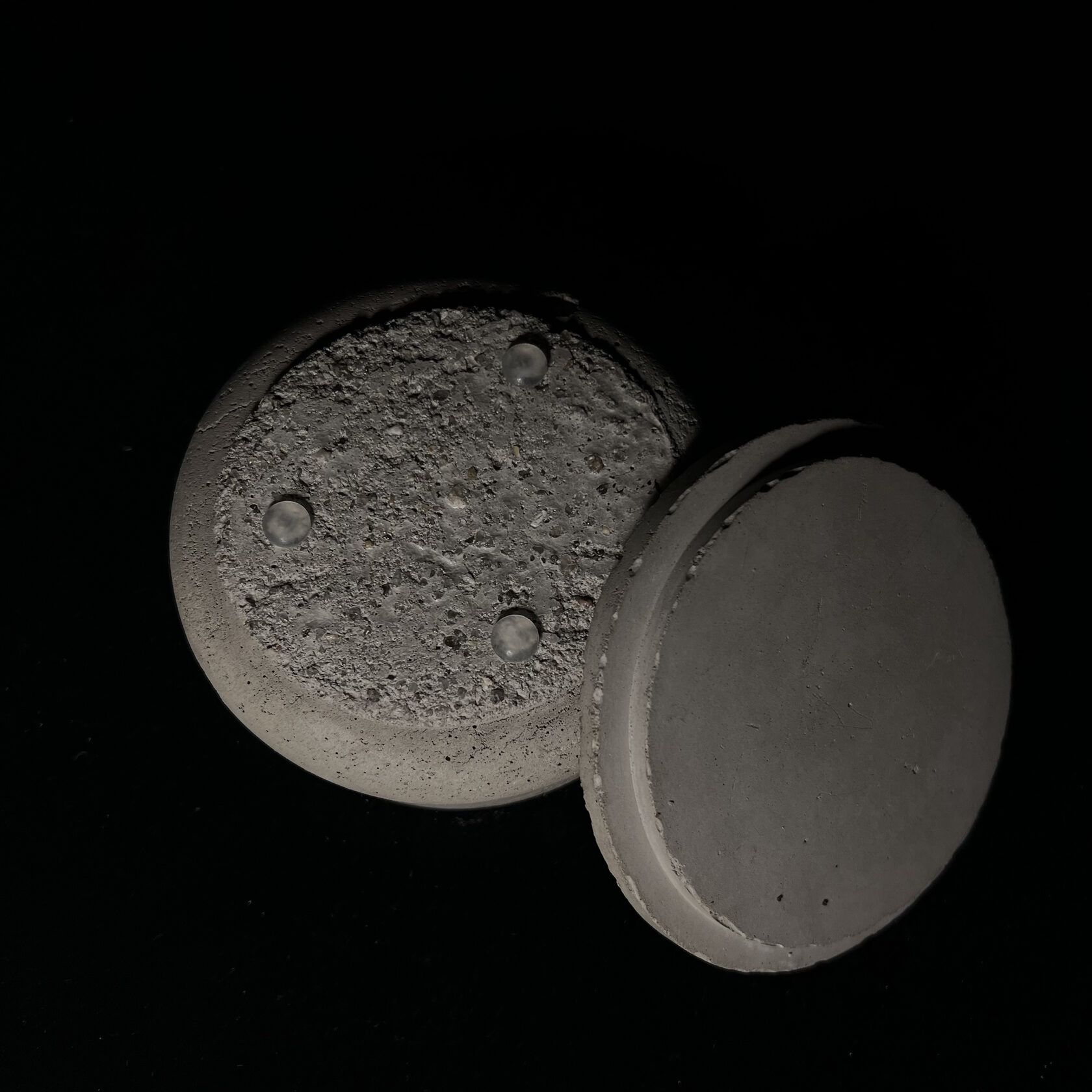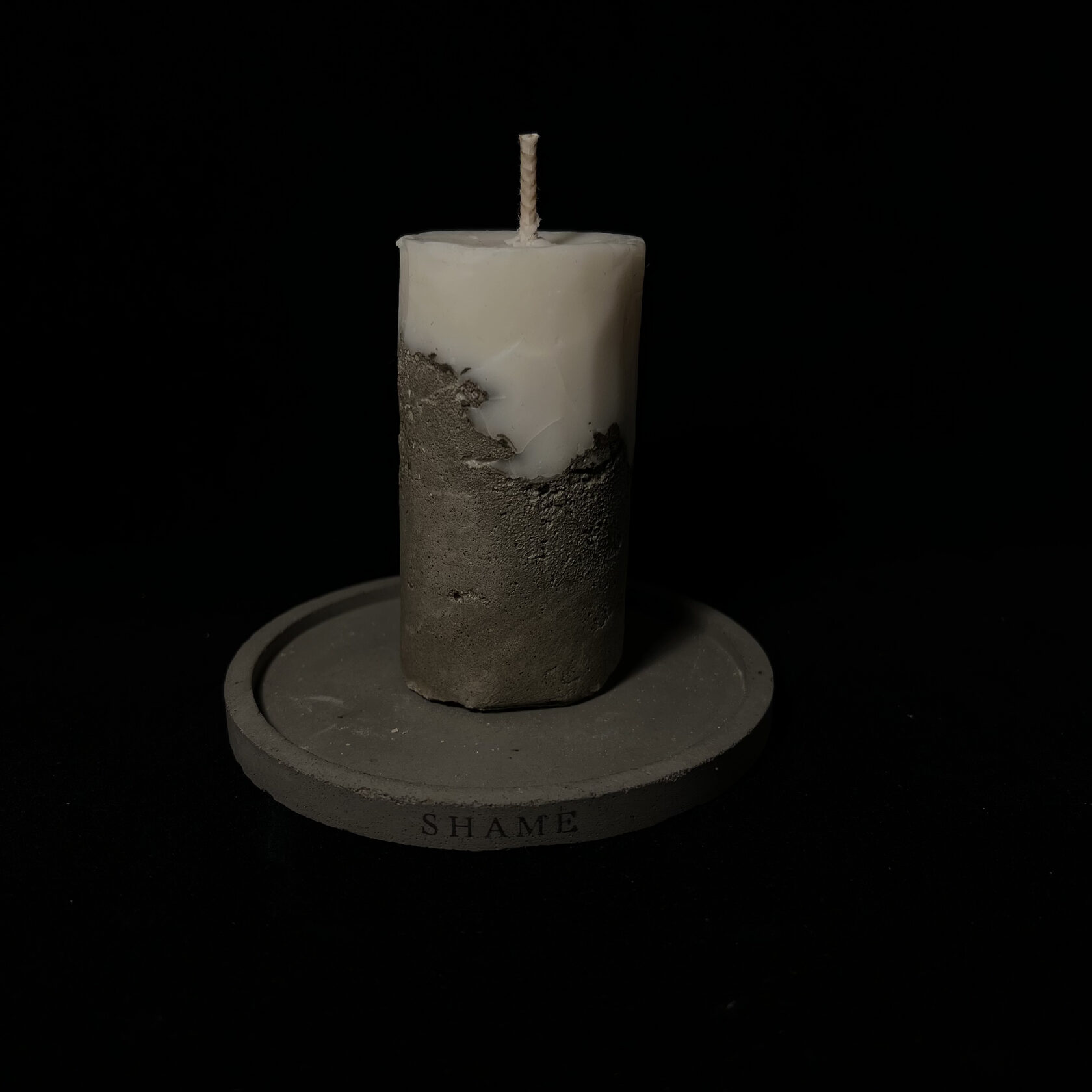 You can see several "The Round Cement Tray" on tables, witch use for candle