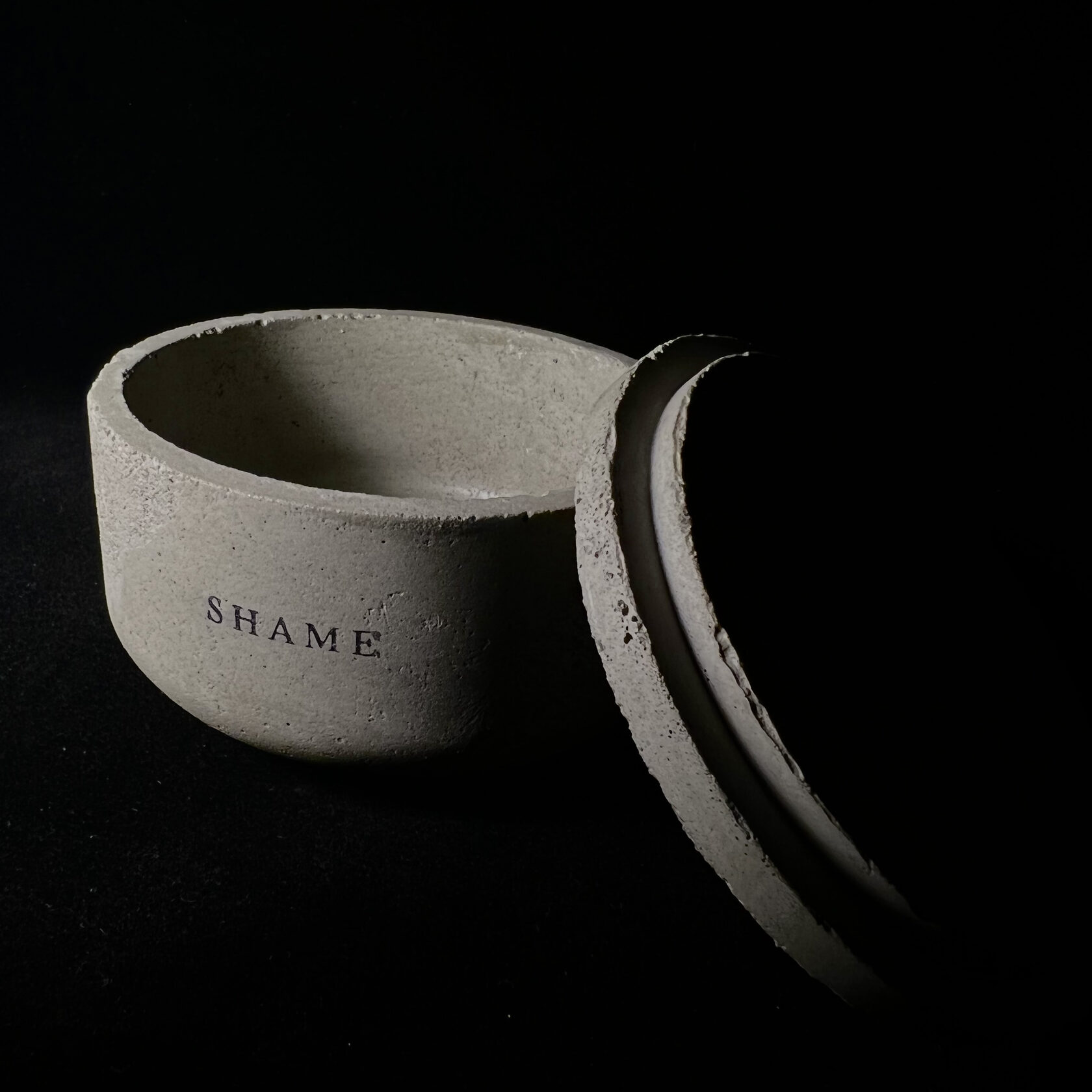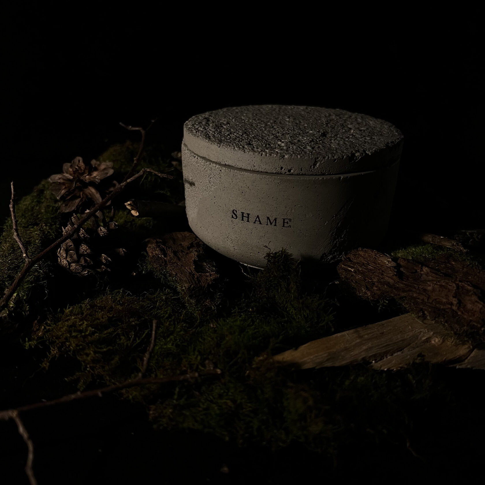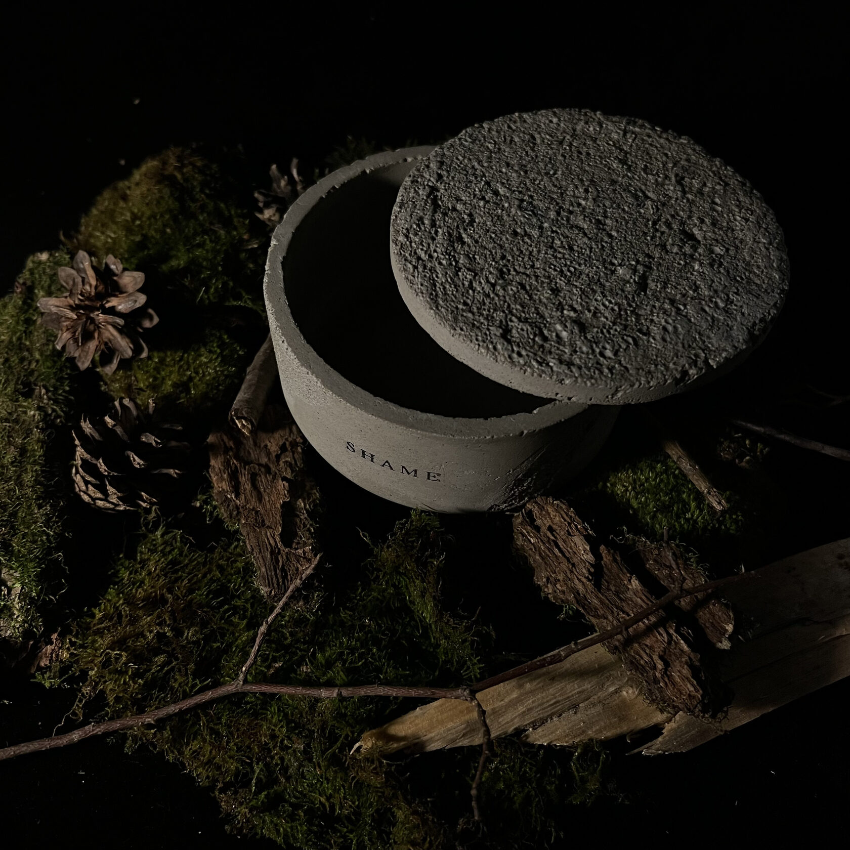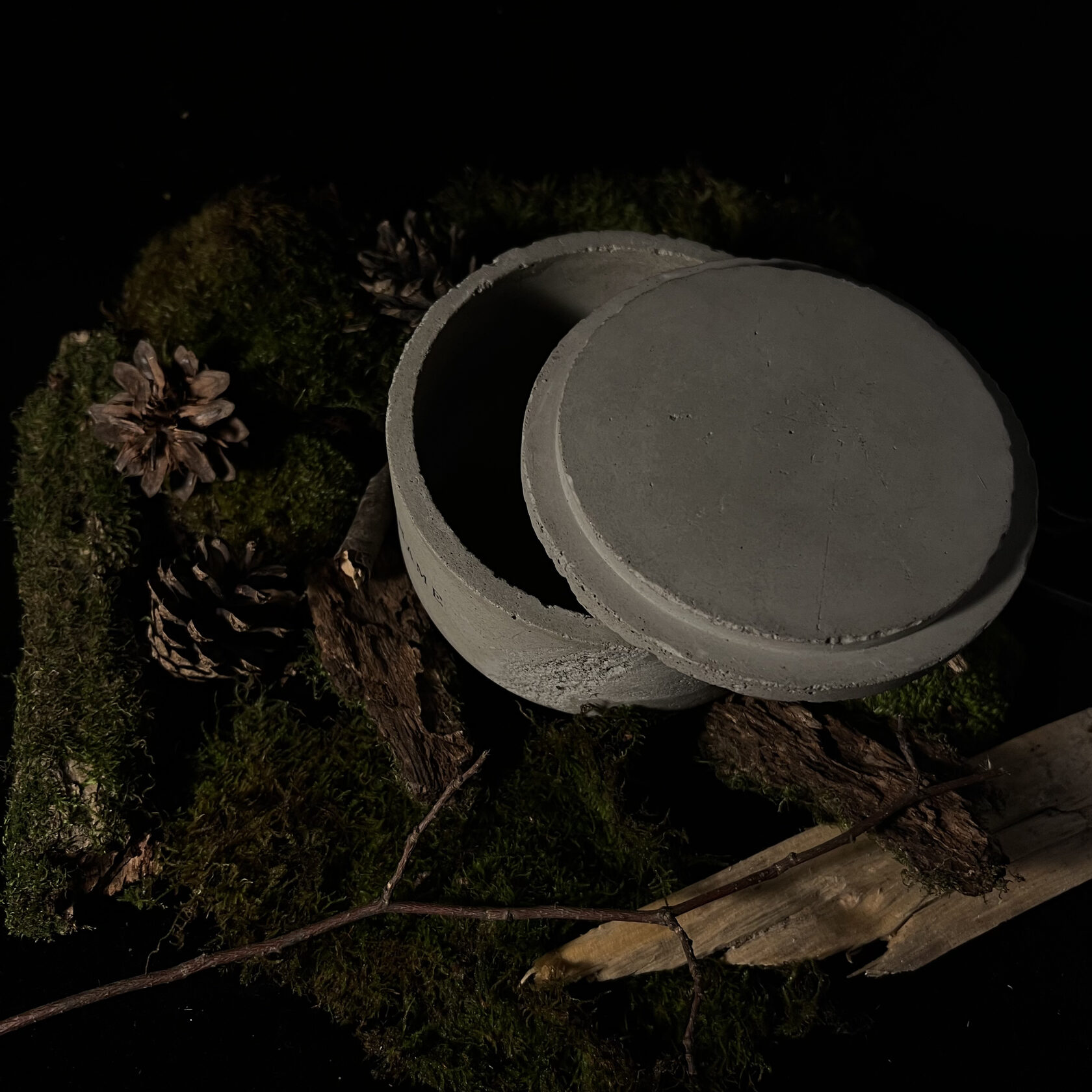 The Cement Lidded Bowl with Natural Moss, Copper and a burnt piece of Oak wood