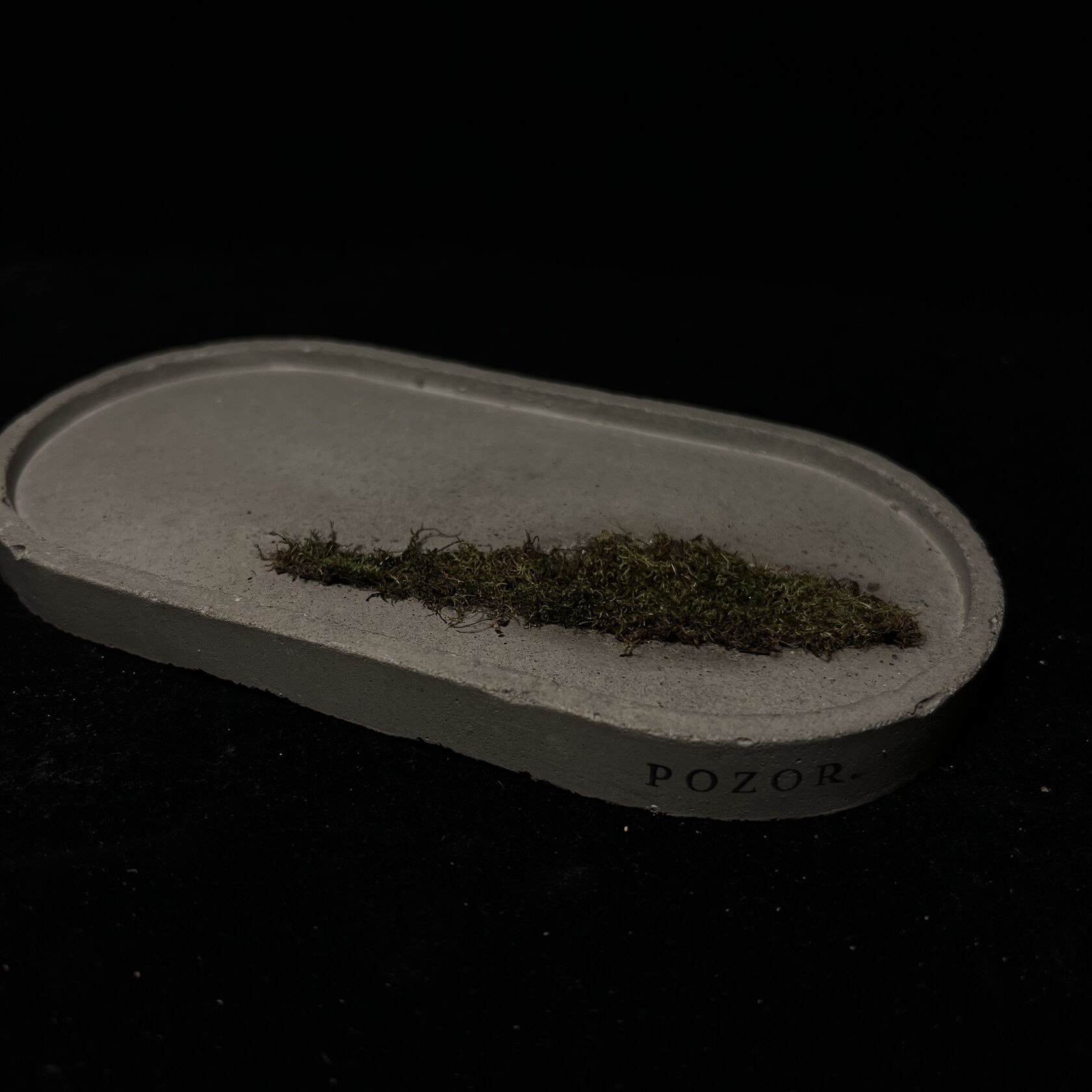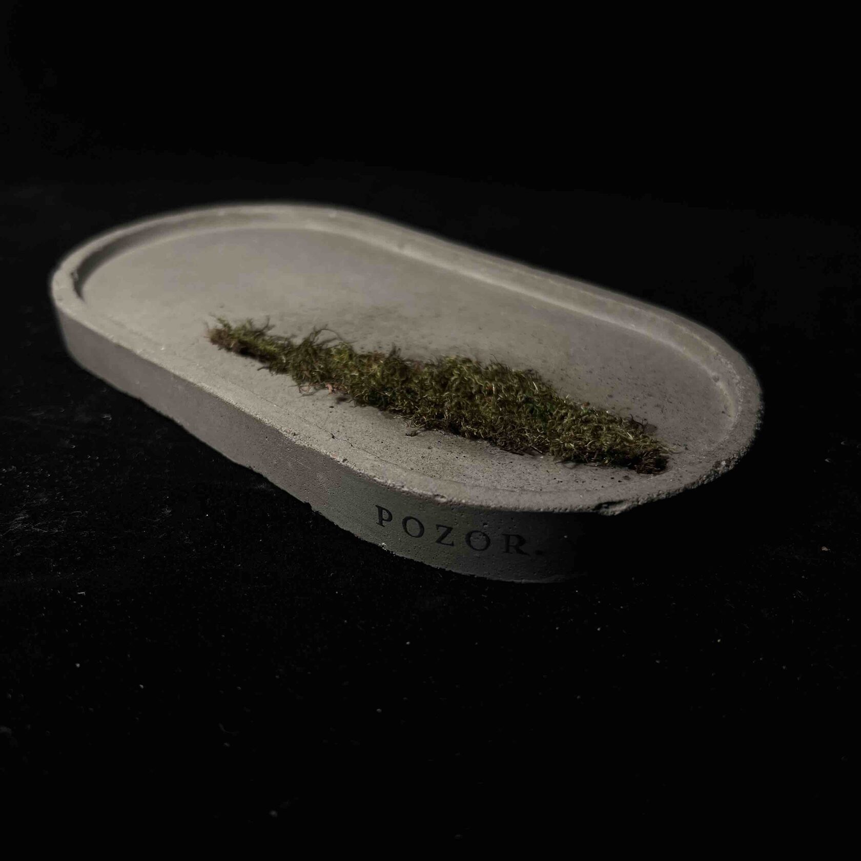Natural green moss grows on half of the product in a recess. Imagine your favourite rings, earrings, cufflinks lying in the middle of this green oasis in a vast concrete desert.